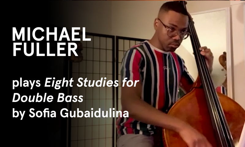 El bajista de LA Phil, Ted Botsford, actúa con electrónica pregrabada y en directo en el explosivo y cuidadosamente elaborado frenetismo de *for social media* de Nathaniel Haering.