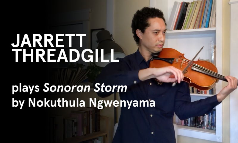 El violista Jarrett Threadgill interpreta una pieza propulsora que representa un chaparrón en el desierto